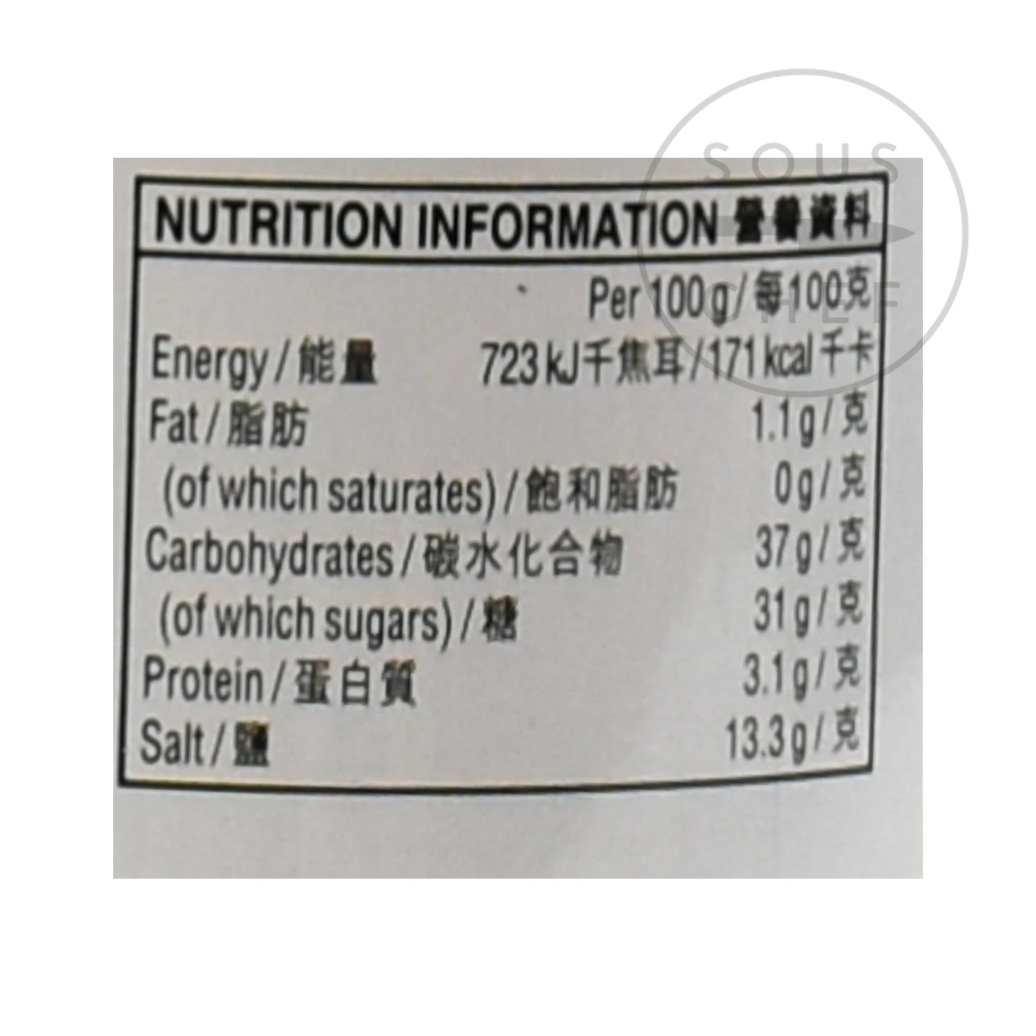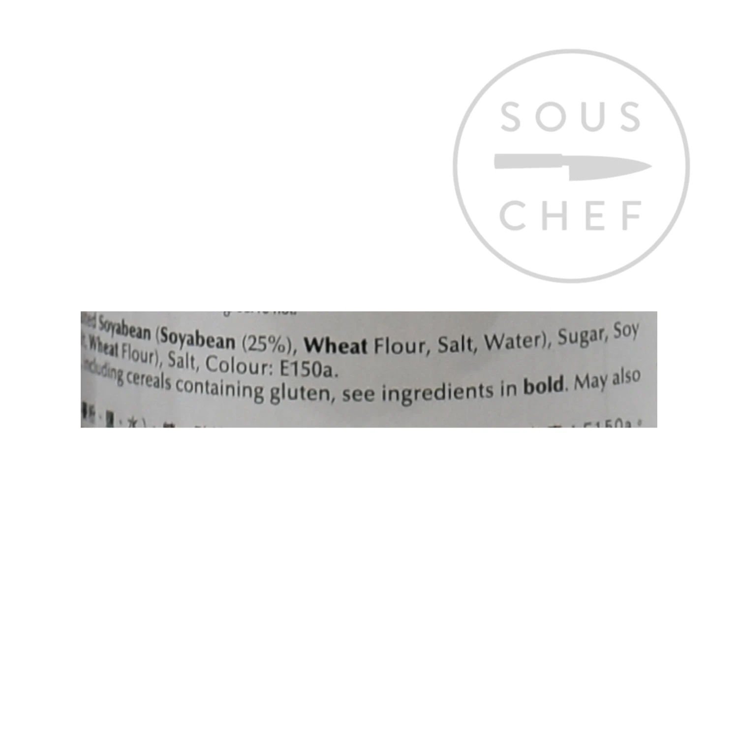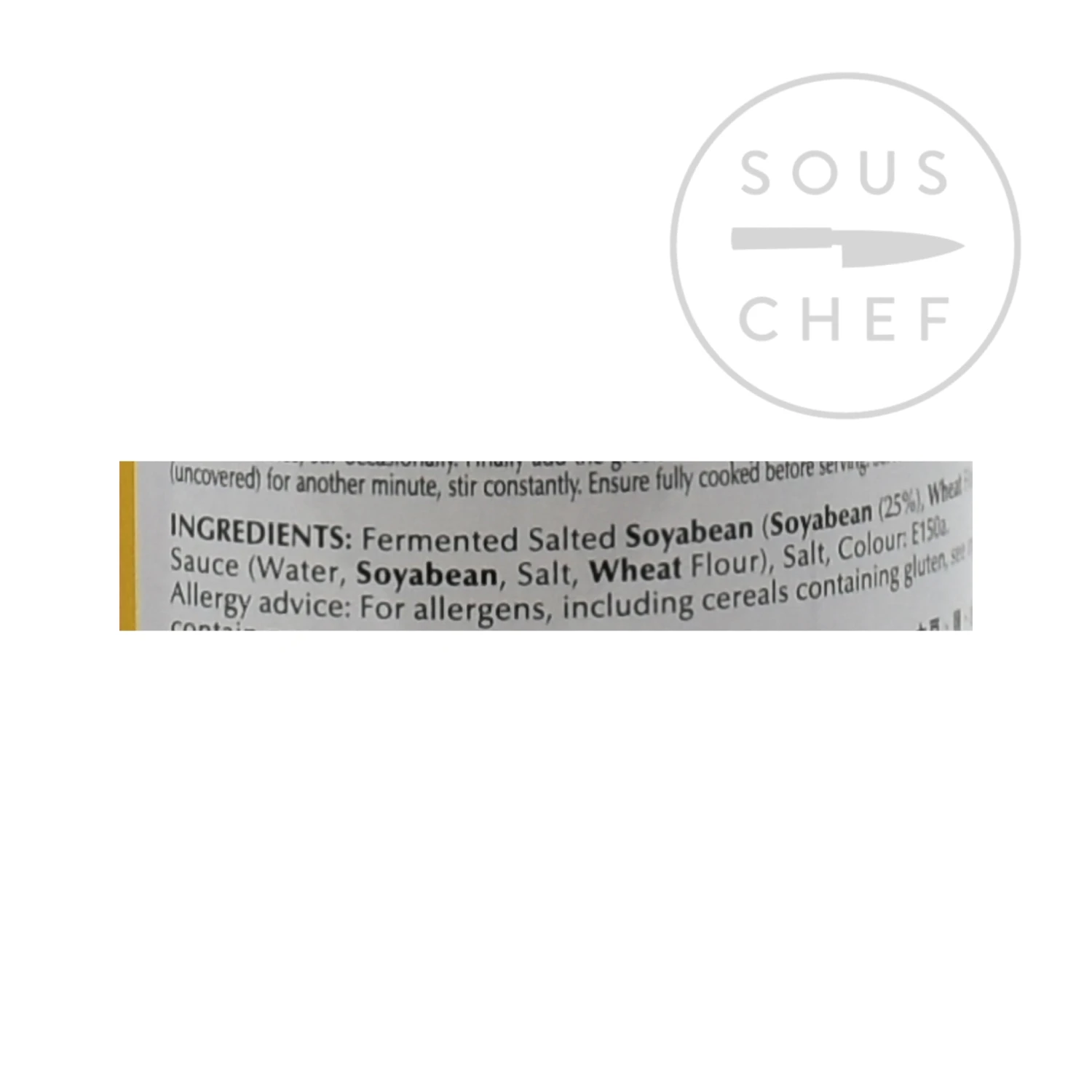 Ingredients: Salted soyabean (soybean (25%), wheat flour, salt, water) sugar, soy sauce ( water, soyabean, salt, wheat flour), salt, colour: E150a. Contains wheat, gluten and soya. Produced in a factory that contains sesame. Please note that depending on availability, brand may differ from that shown in the photograph.