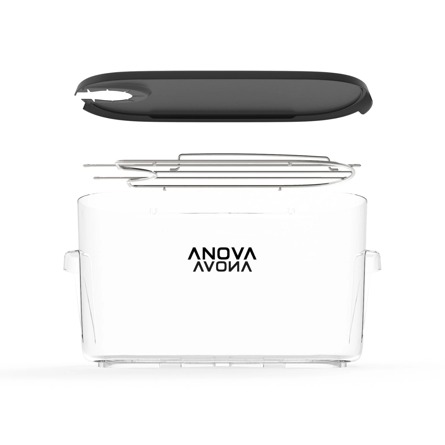 Use Anova’s sous vide container to hold the Anova precision cookers while you cook your food. With clear sides and a lid, it is the perfect container for sous vide cooking – you can see the food as it cooks, and the 100% silicone lid provides a tight fit.