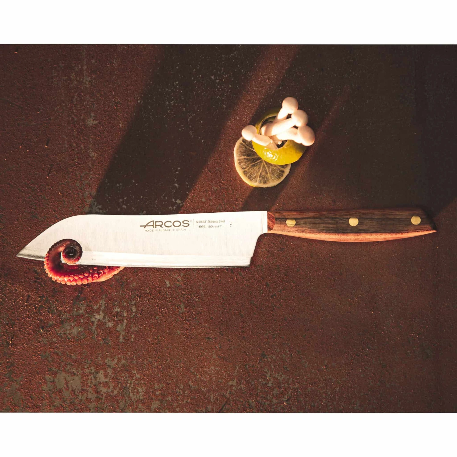 The Acros Nordika Santoku knife is an elegantly-crafted multi-purpose chef’s knife suitable for almost any kitchen preparation task. Santouku means ’three virtues’ or ‘three uses’ in Japanese – this is a knife that is perfect for meat, fish or vegetables of varying sizes and cuts.Â