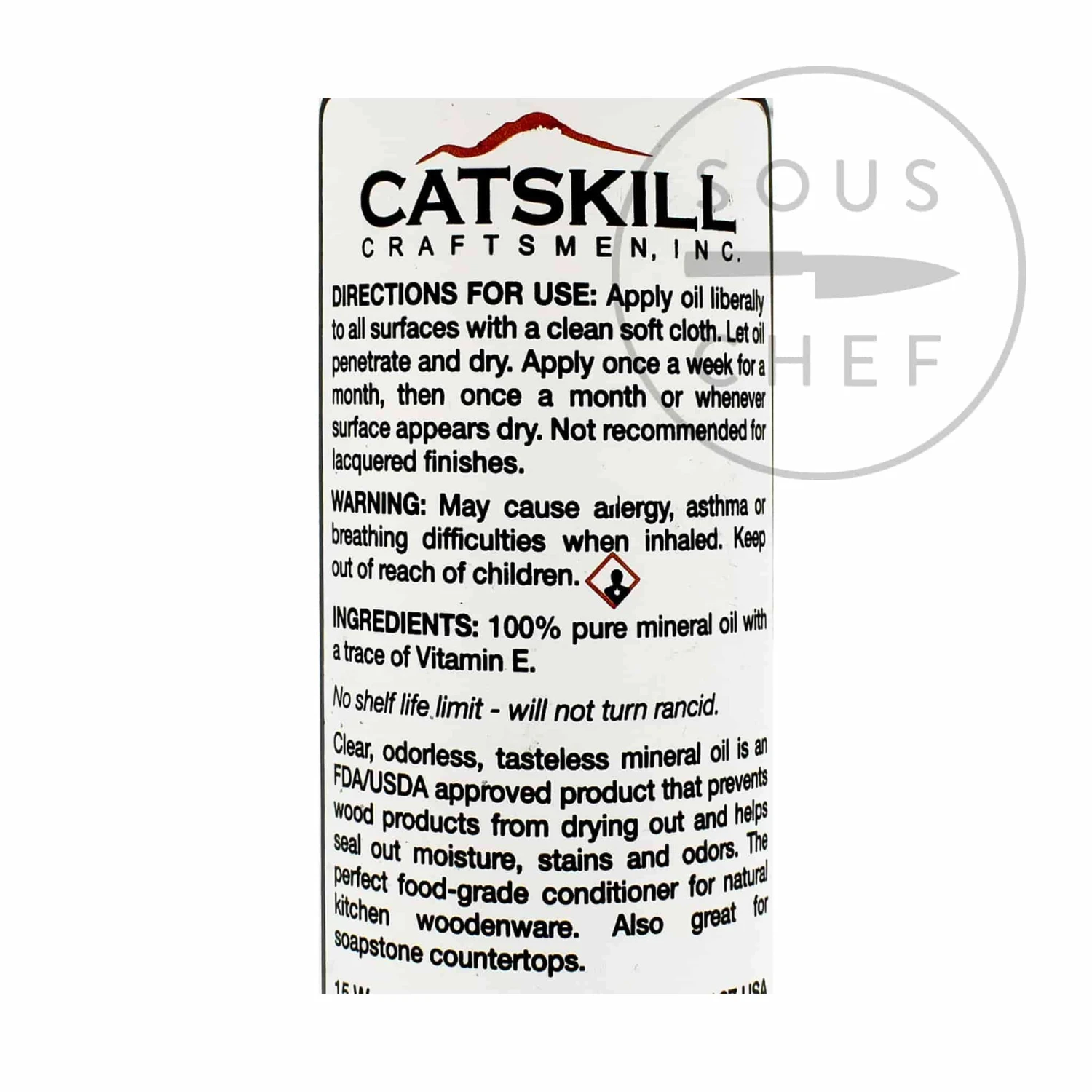 This mineral oil for use on wooden chopping boards seals and protects any wooden kitchen equipment and tableware from damage and bacteria. By providing a protective layer on the wood that locks out moisture, it prevents the wood from harbouring bacteria and prolongs the lifespan by protecting against moisture-related decay. Â