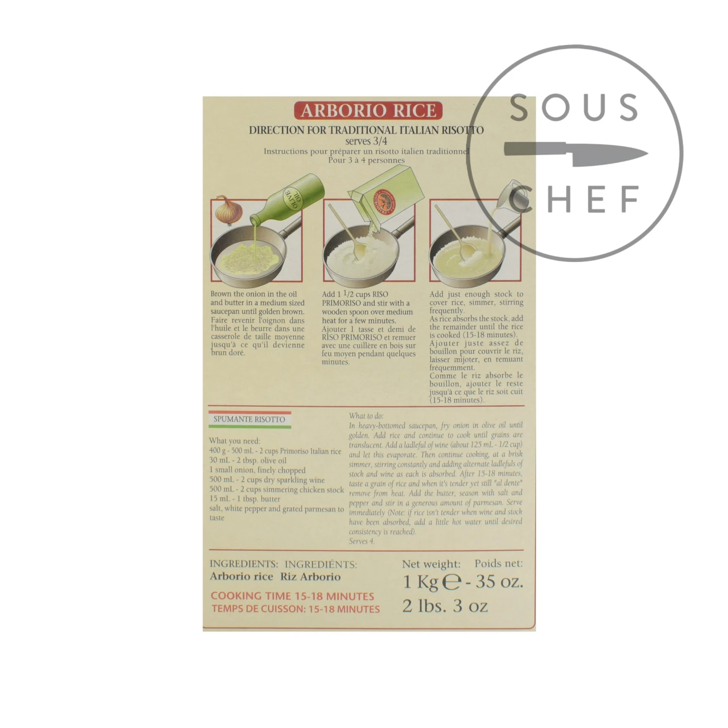 This Italian arborio risotto rice is a great choice for risottos because the kernels are high in starch which creates a creamy, smooth texture when cooked. The medium-length grains can absorb a lot of water, but still retain a good ‘bite’ and don’t become stodgy.
