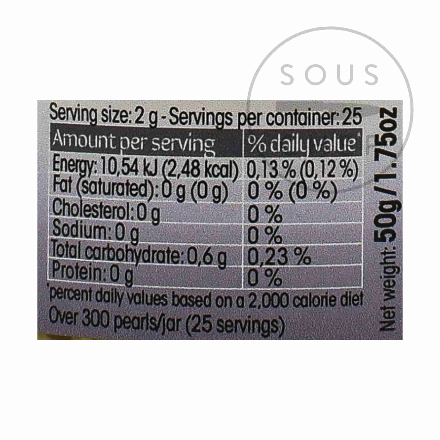 Use these pale, translucent pearls to add a sophisticated finish to beef carpaccio or sashimi salmon, or to complement the savoury flavours of a mushroom risotto. They also made an ideal alternative to caviar for finishing canapes.Â