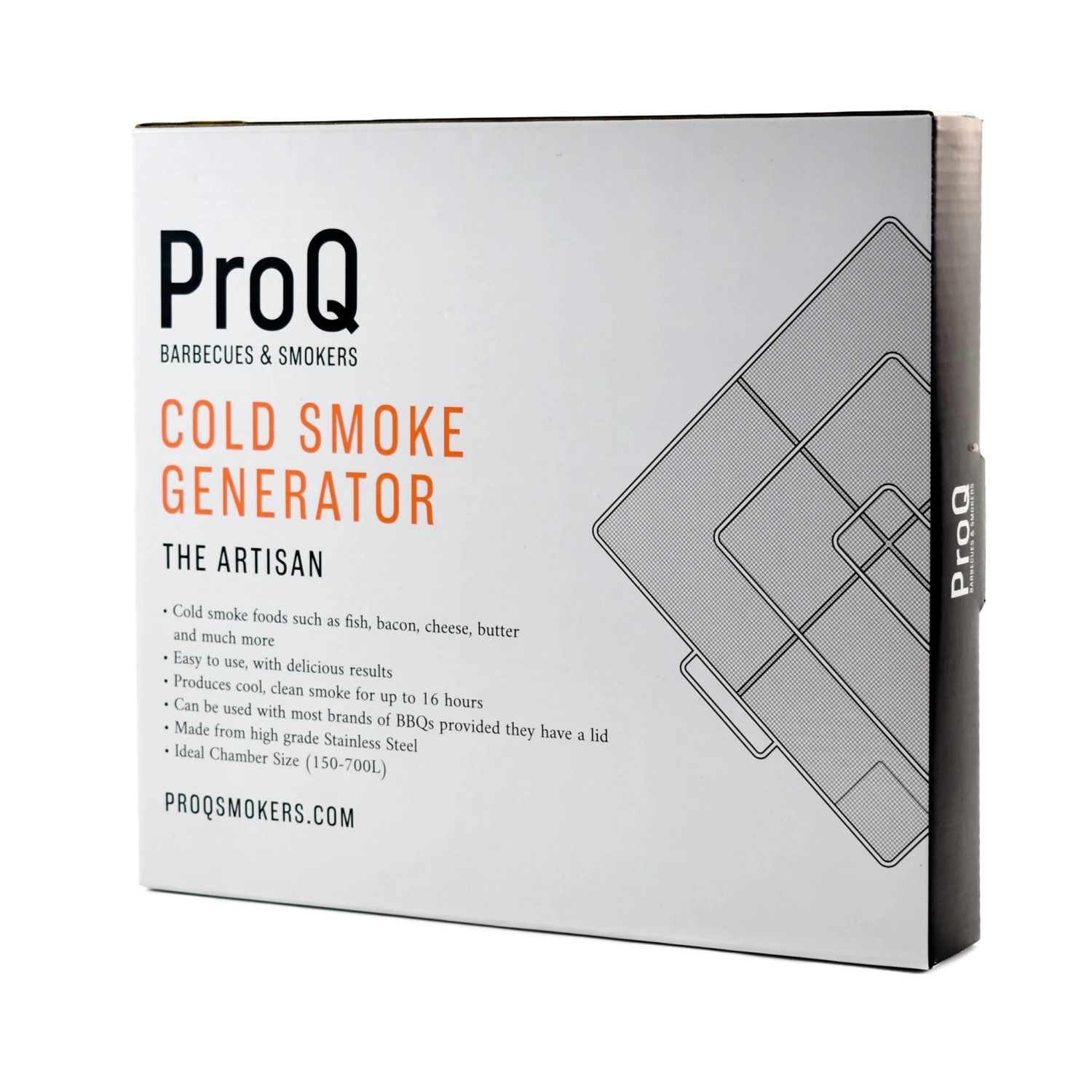 The Artisan ProQ cold smoke generator is the larger vesion of the ProQ cold smoke generator and produces up to sixteen hours of aromatic smoke – perfect for cold smoking fish, meats and cheeses, and infusing them with wonderful camp-fire flavours. Simply place the smoke generator inside a sealed metal box to retain the smoke – for example a barbecue with a lid (like a Weber BBQ), or a metal dustbin. Alternatively sit in the ProQ Excel 20 Elite – a top of the range BBQ hot smoker, with 2 stackers, saving you from having to make your own.Â