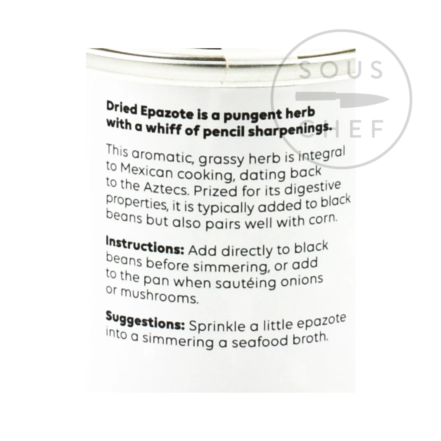 Epazote grows wild in many parts of the USA and Mexico, and is key in central Mexican cuisine. Epazote is commonly confused with Mexican oregano, but is quite different, with an almost perfumed, grassy aroma. Dried epazote is referred to the bean herb, most often cooked alongside dried black beans or pinto beans to aid digestion – preventing any unpleasant pulse side effects!