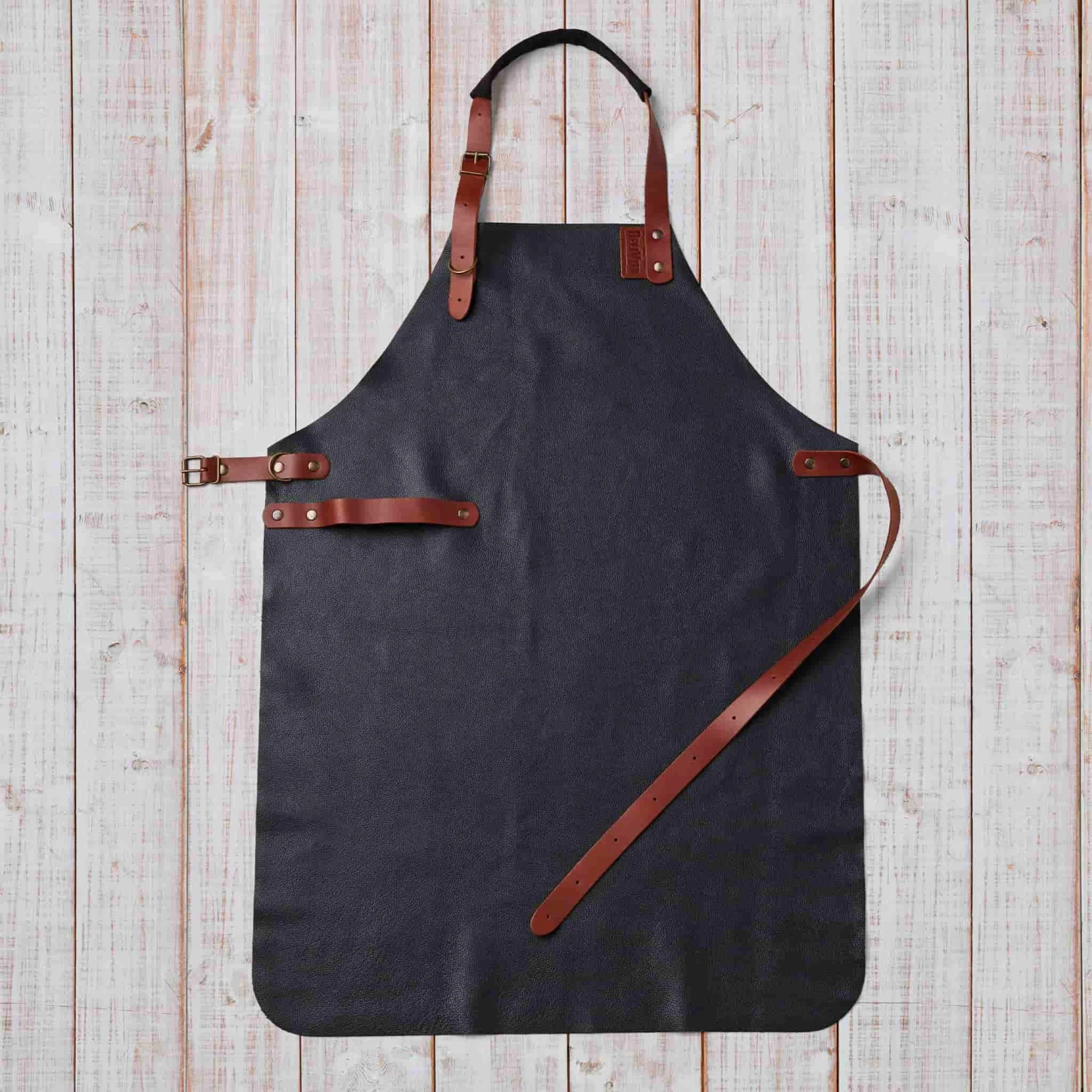 The DeliVita leather apron is made by hand, using Italian buffalo leather. The fabric is soft and flexible, and extremely light – perfect for cooking in any weather. Use the natural tan belts and straps to fit it perfectly to your shape. Plus, the handy buckle clasp is just the place to tuck in a tea towel as you cook! Leather is a great choice for wood fire cooking, as it is sturdy and offers good protection.