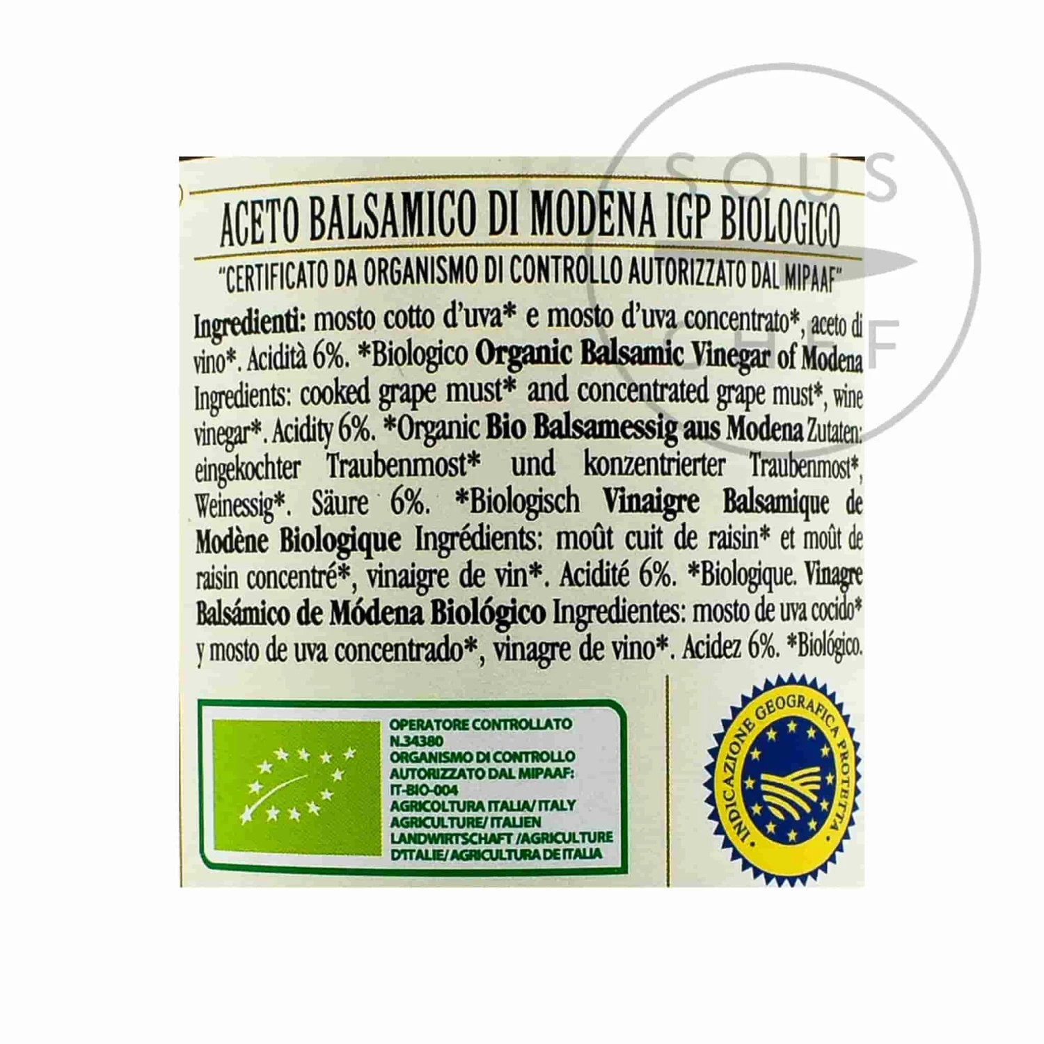 Ingredients: Cooked grape must and concentrated grape must*, wine vinegar*. *Organic ingredients.