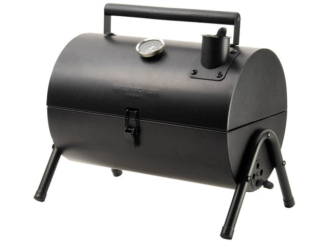 The tabletop BBQ smoker comes with grills for charcoal and food, adjustable air vents in the top and sides and a thermometer to monitor the internal temperature.