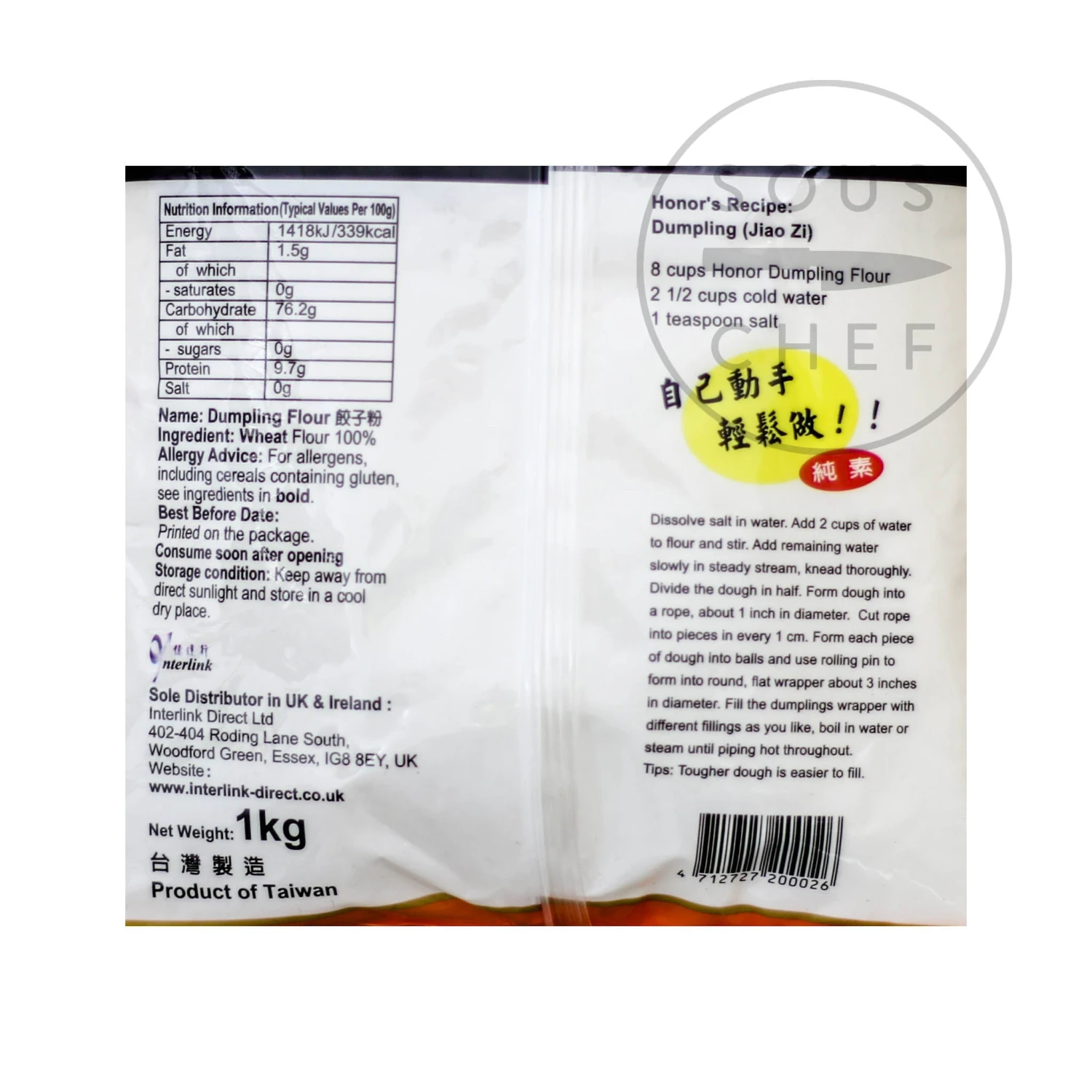 Dumpling flour is made from 100% wheat and is ideal for making stretchy doughs used in Chinese dumplings as well as noodles and sticky buns.