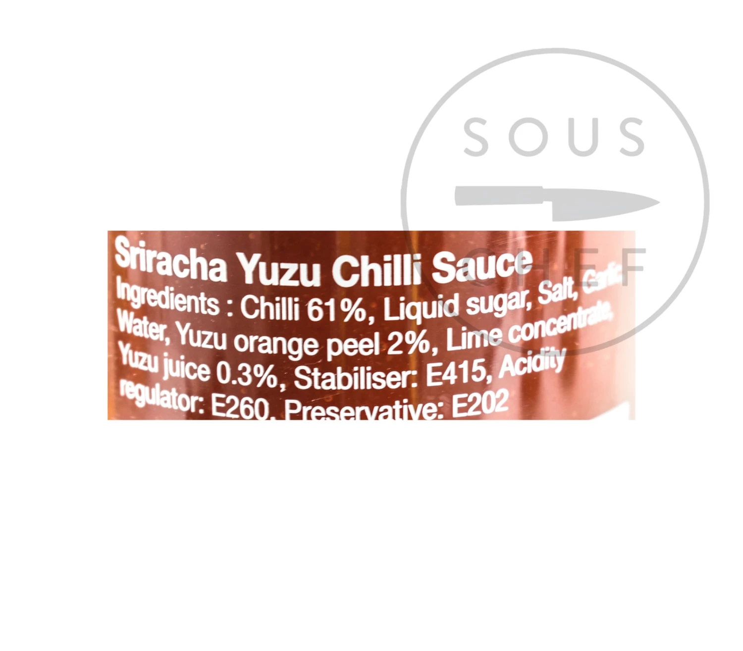 Ingredients: Chilli 61%, liquid sugar, salt, garlic, water, yuzu orange peel 2%, lime concentrate, yuzu juice 0.3%, stabiliser: E415, acidity regulator: E260, preservative: E202.