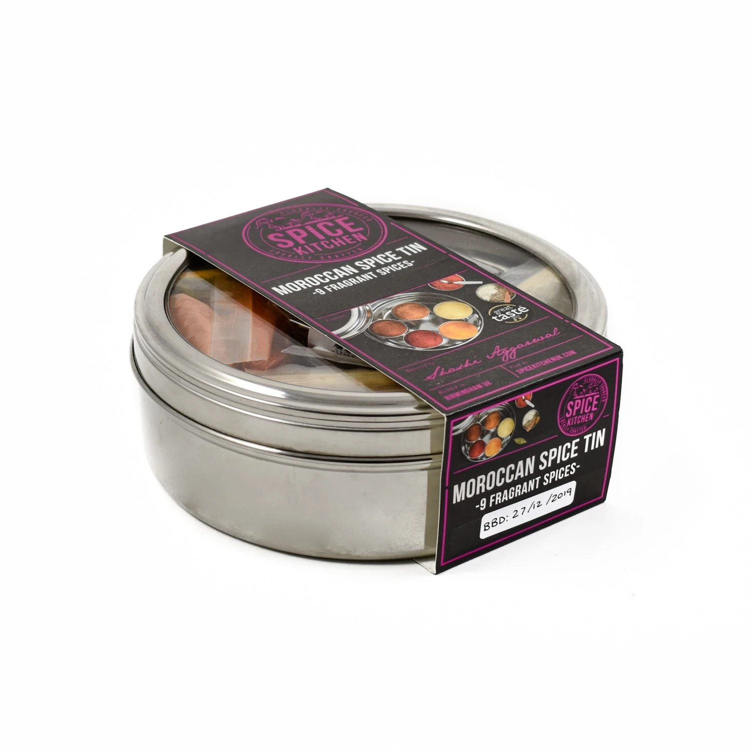 The Spice Kitchen Moroccan spice tin will transport you to the soukhs of Marrakech. It’s the ideal gift for anyone wanting to recreate authentic Moroccan dishes at home. The selection of 9 essential spices is presented in a spice tin, or masala dabba.