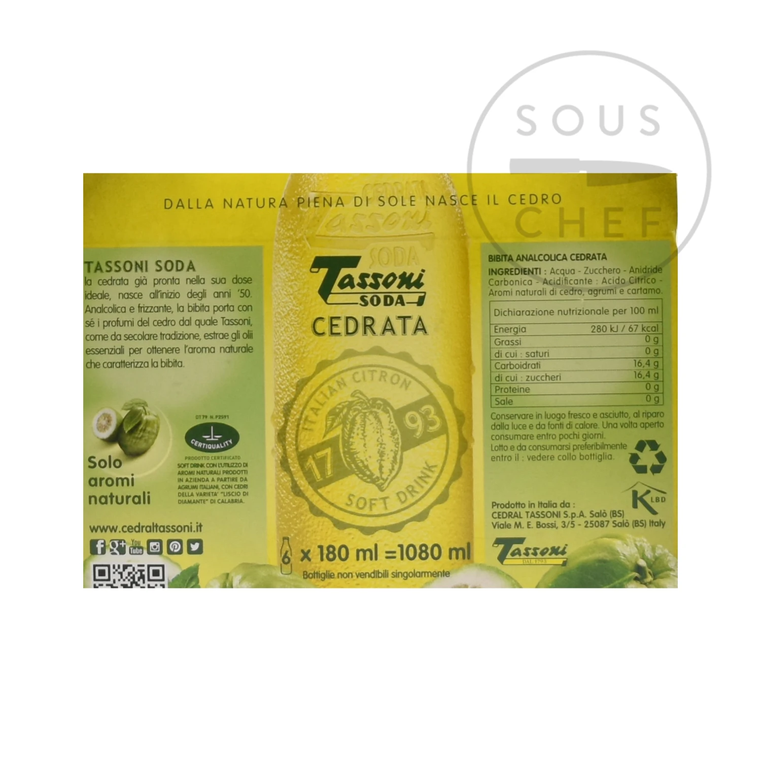 Tassoni Cedrata is a refreshing, non-alcoholic sparkling citrus drink from Italy. It has a distinctive flavour and aroma that comes from citron – a thick-skinned, intensely fragrant citrus fruit also known as cedra or etrog. Calabrian citrons, called Diamante, are used to make the sweet, sharp Cedrata soda.