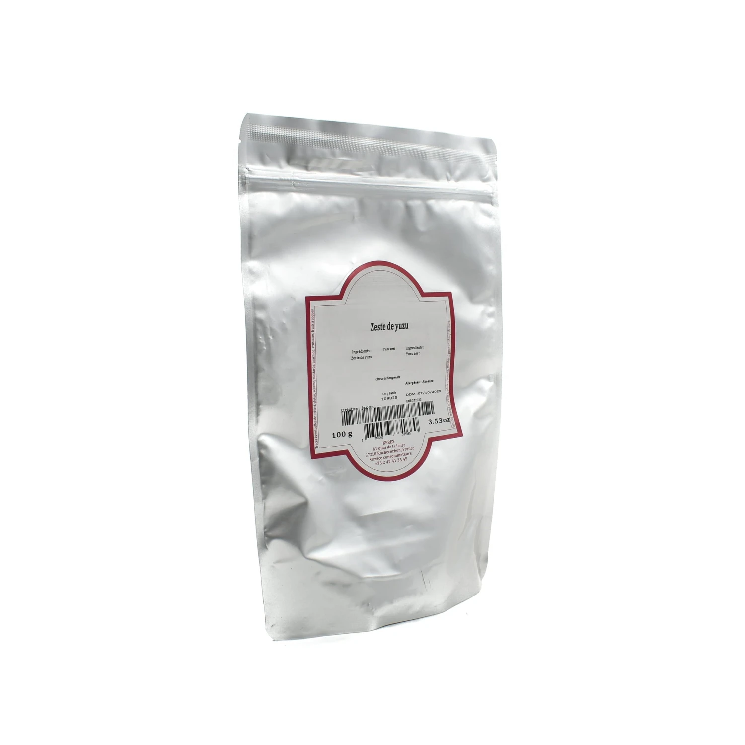 This 100g bag is ideal for professional kitchens – the yuzu zest comes in opaque packaging, protecting it from light and preserving the fresh flavour, while the flat base makes it easy to store.
