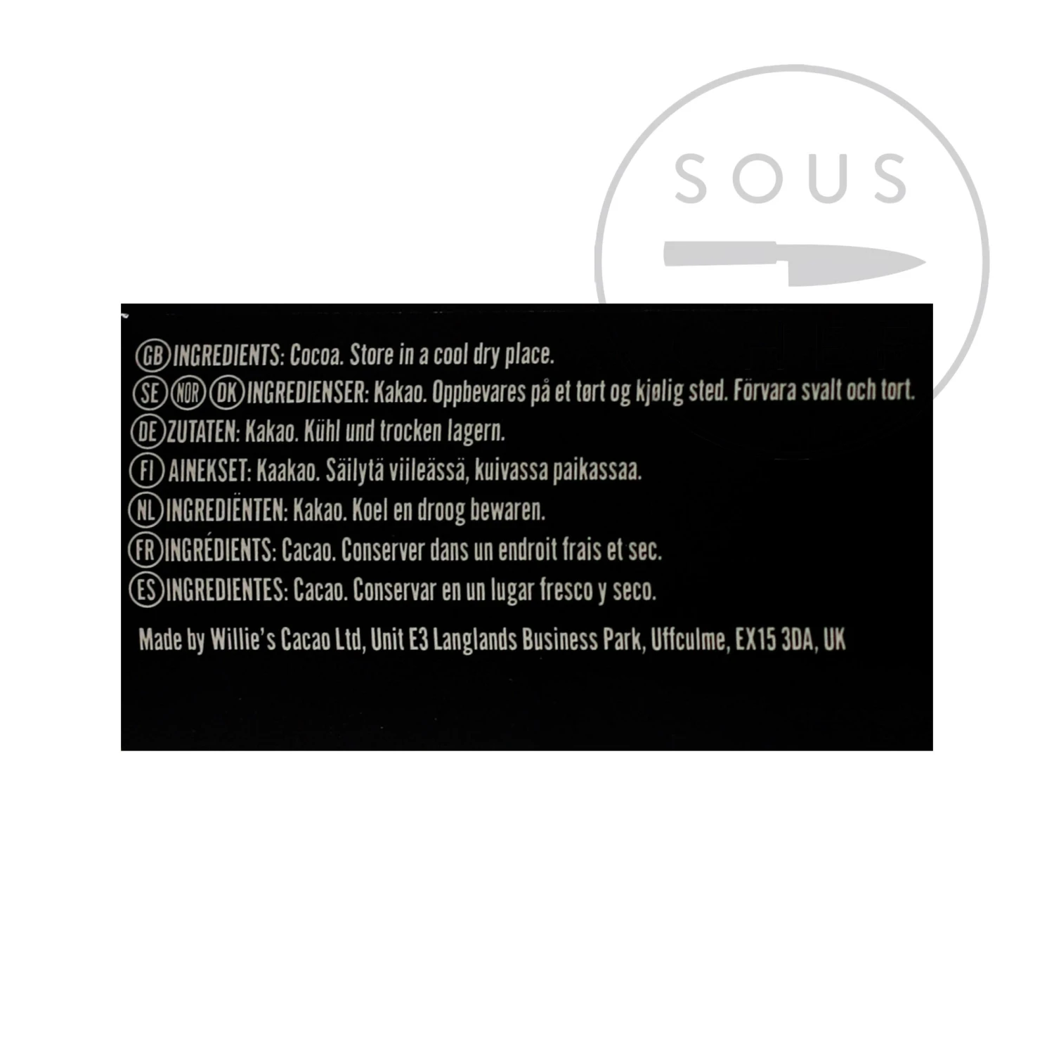 Willie’s Cacao Madagascan black 100% cooking chocolate is an incredibly intense base for truffles, and adds a rich depth of flavour when grated into slow-cooked stews. Made from 100% pure cacao, this chocolate block has juicy summer fruit notes. Use it in everything from black forest gateau to chocolate mousse.Â