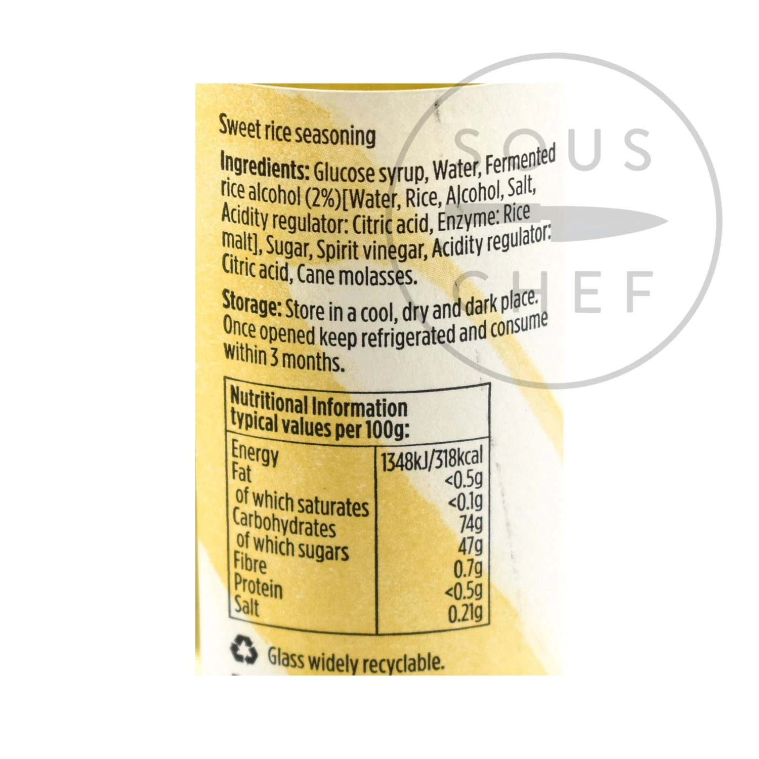 Ingredients: glucose syrup, water, fermented rice alcohol (2%) [water, rice, alcohol, salt, acidity regulator: citric acid, enzyme: rice malt], sugar, spirit vinegar, acidity regulator: citric acid, cane molasses.