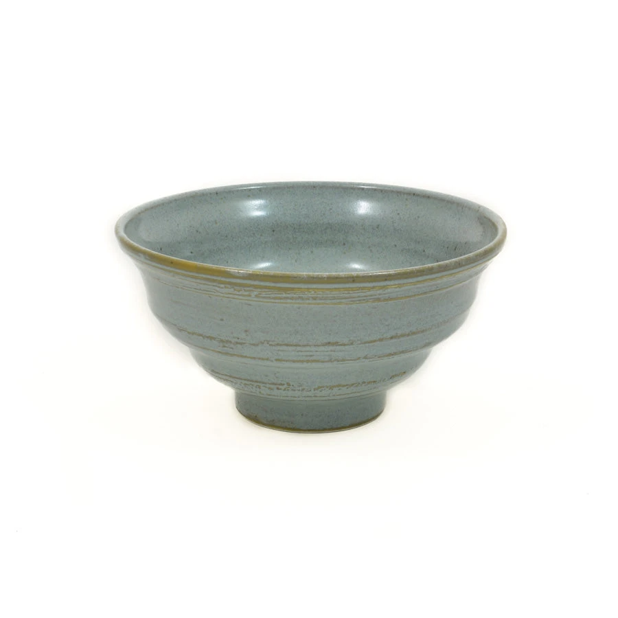 This blue-grey glazed ceramic noodle bowl has a beautiful subtle blue-grey hue. The glazed effect has a rustic charm with parts of the ceramic visible on the exterior of the bowl. The shape and size of this Japanese bowl is perfect for serving noodle or ramen dishes.