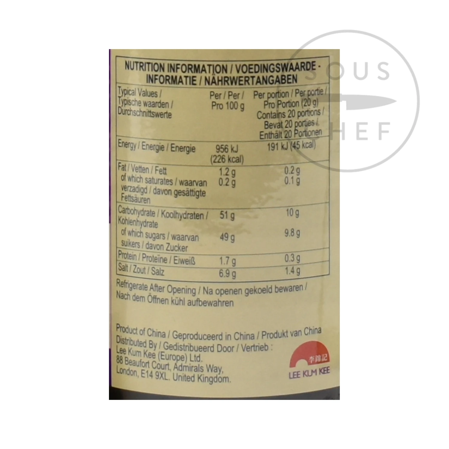 Lee Kum Kee hoisin sauce is a spicy-sweet sauce made from a blend of umami-rich soybean paste, salted plums, sesame and chilli peppers. Also known as ‘Chinese barbecue sauce’ or ‘hoi sin sauce’, hoisin sauce has a similar consistency to HP sauce, making it a great glaze for pork or duck dishes. Also use hoisin sauce as a dipping sauce with spring rolls, or to bring sweet, complex flavours to stir fries.