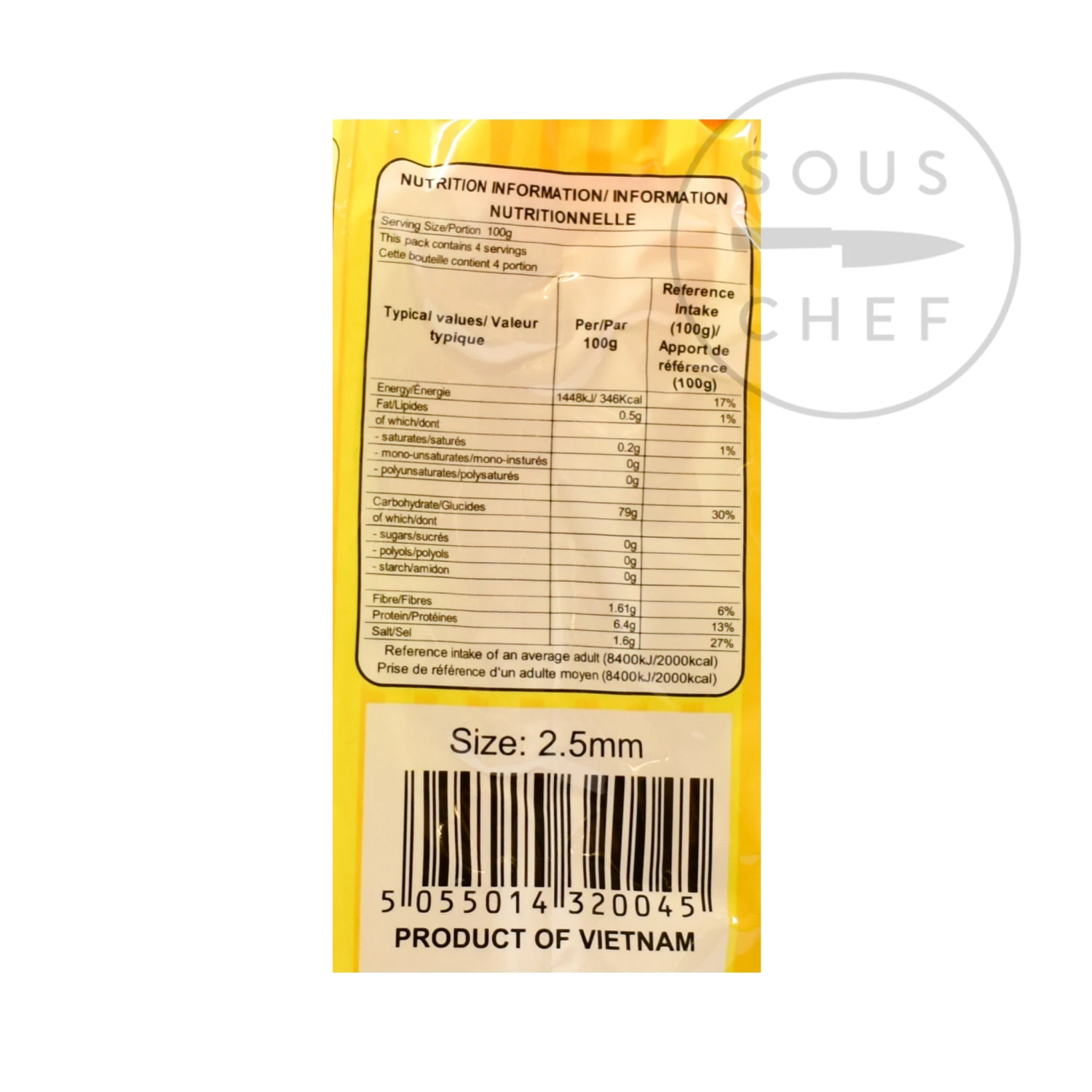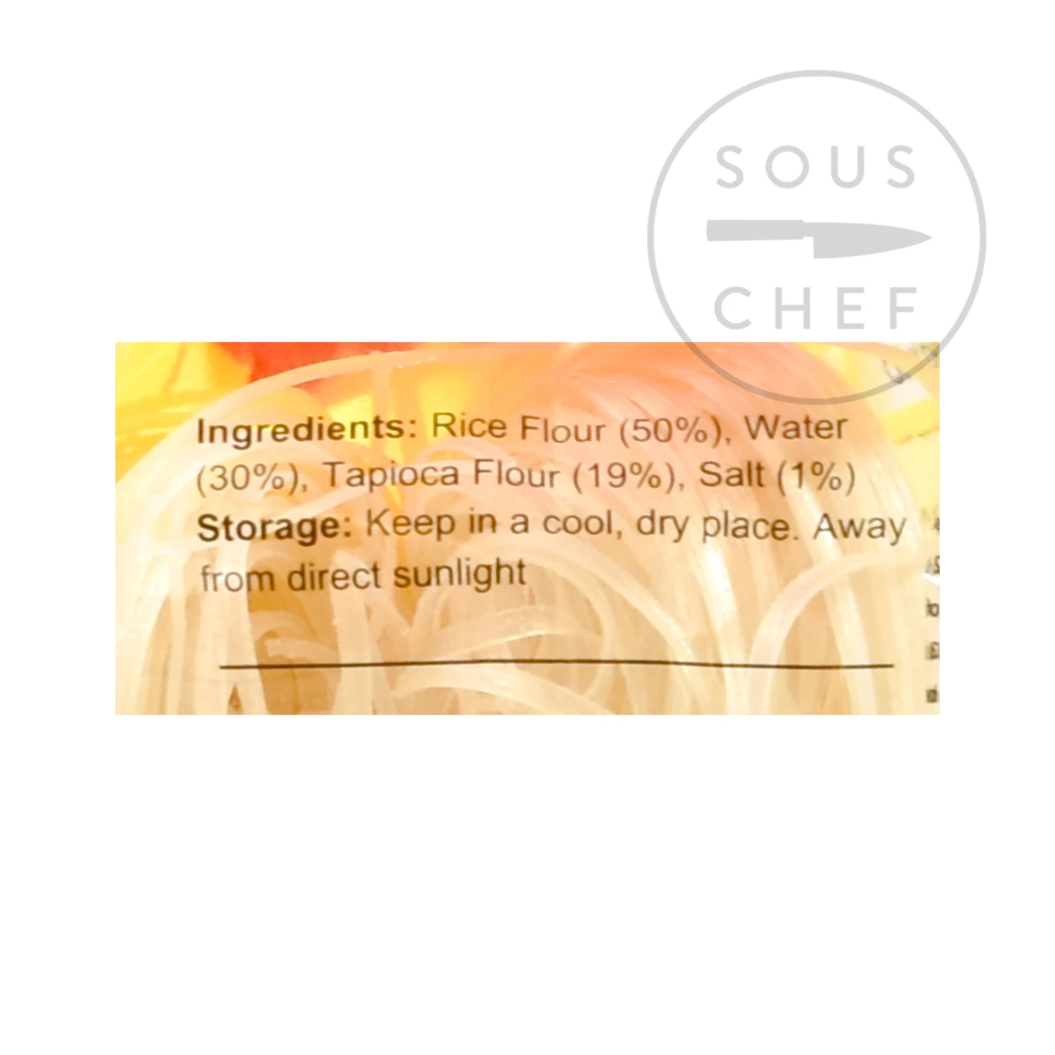 Ingredients: rice flour (50%), water (30%), tapioca flour (19%), salt (1%)