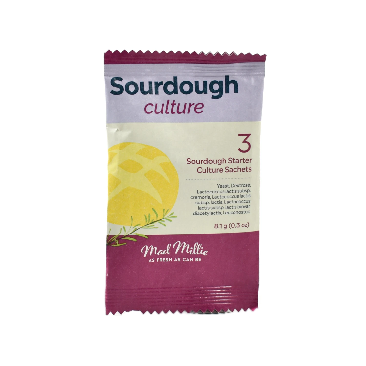 Use these Mad Millie sourdough yeast / cultures with your Mad Millie 15 minute sourdough bread making kit. Or use in place of a traditional starter with any sourdough recipe whenever the craving for sourdough strikes! With these sachets you’ll always be ready to bake a stunning sourdough loaf at home.
