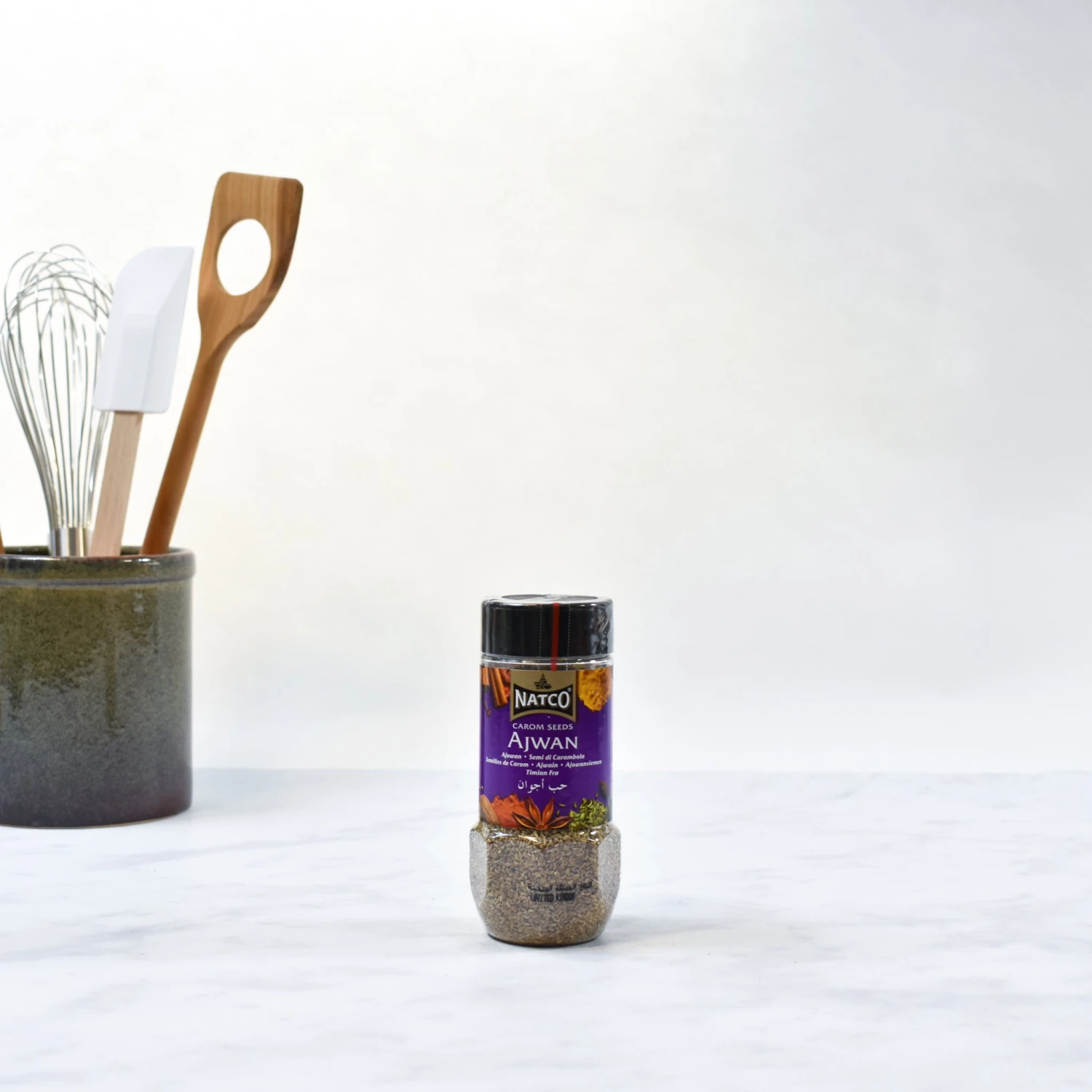 Ajwan seeds are tiny, ridged seeds (also known as ajowan, ajwain, lovage or carom) which come from the thymol plant Carum copticum, native to southern India. Used as a spice, these ajwan seeds have a distinctive flavour with peppery notes and a thyme-like aroma when rubbed or crushed.