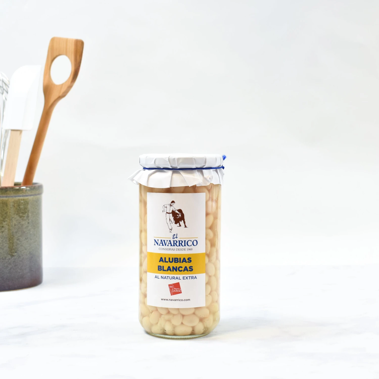 Navarrico alubias haricot beans will give you healthy Spanish meals in minutes. These quality beans are ready-to-eat straight from the jar, so all you need to do is drain them.