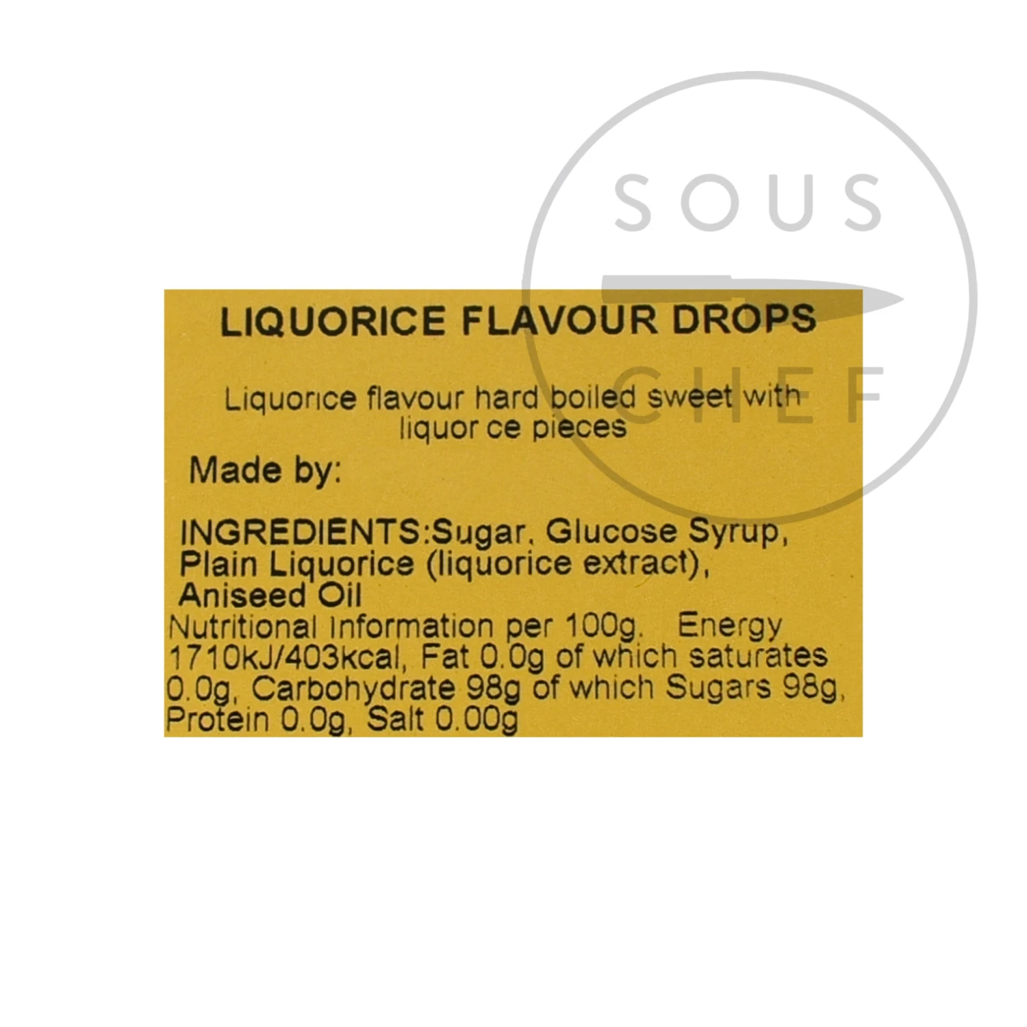 Ingredients: Sugar, glucose syrup, plain liquorice (liquorice extract), aniseed oil, flavours