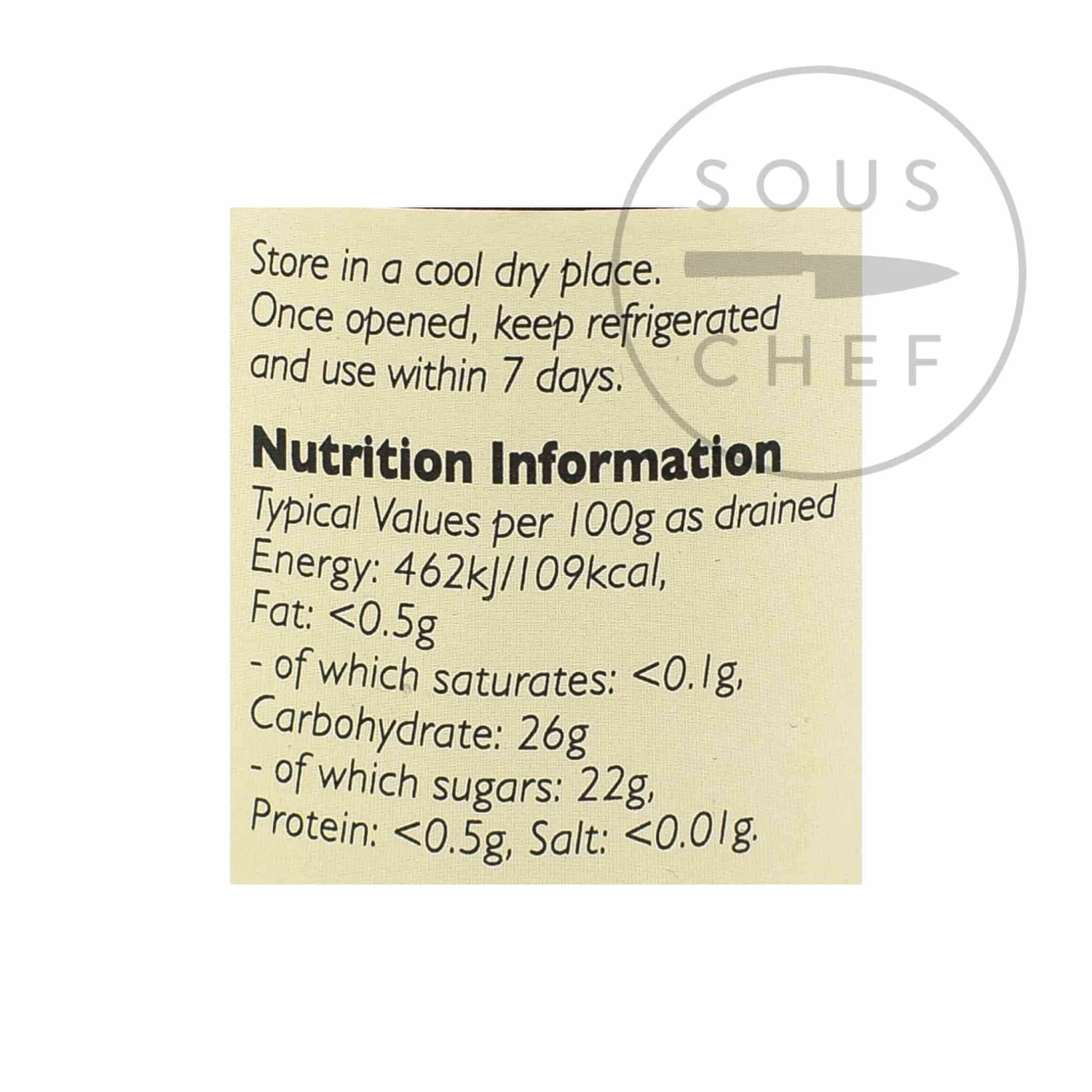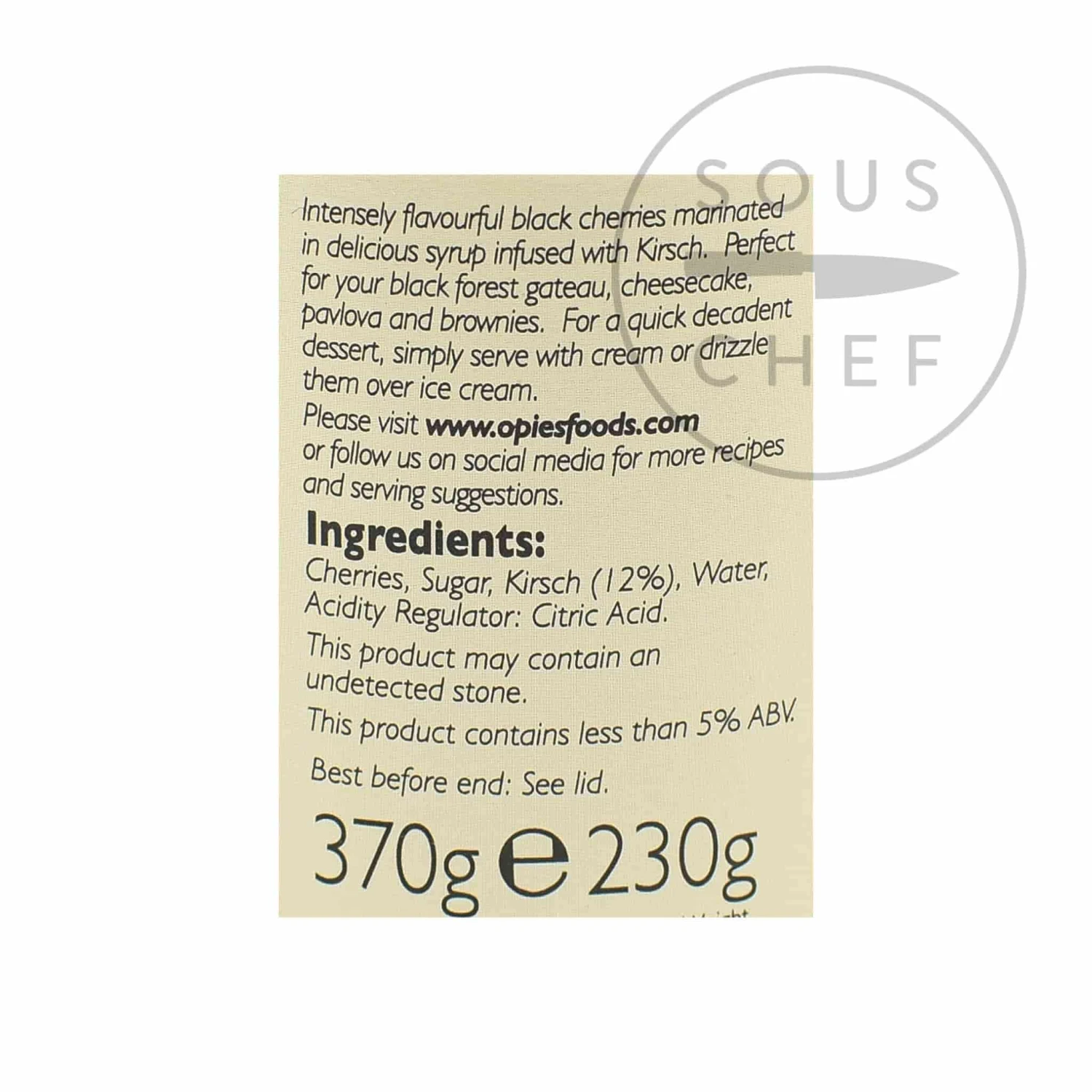 Ingredients: Cherries, sugar, kirsch (12%), water, acidity regulator: citric acid.