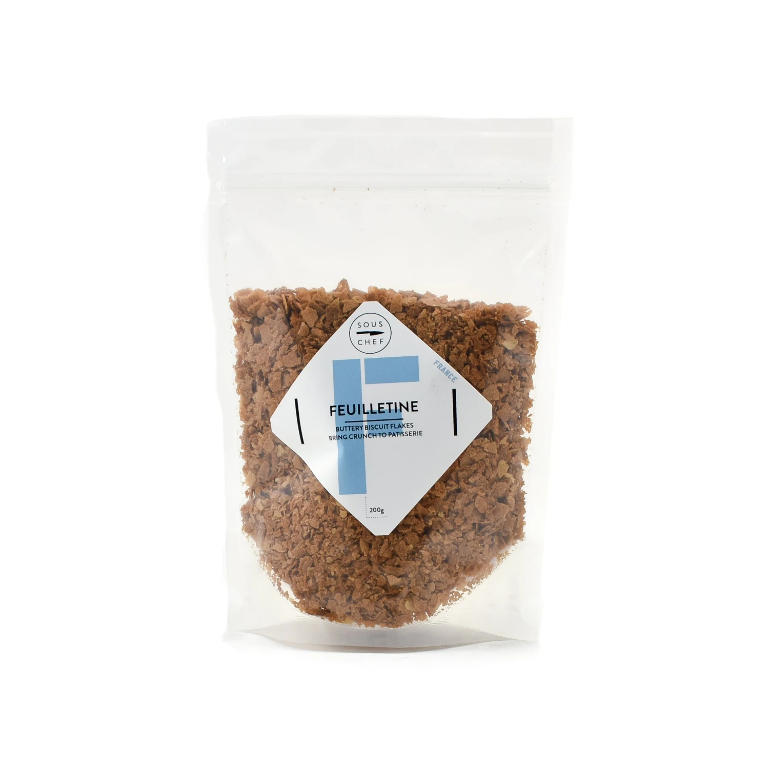 Feuilletine are brittle crispy flakes with caramelized flavours. Feuilletine flakes are used in professional pâtisserie for their delicious sweet flavour and light, crispy texture.