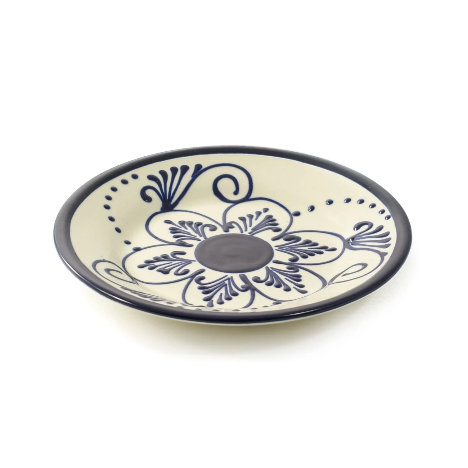 Use this Andalucia small plate for a striking side dish on the dinner table, or to serve up small sharing starters and tapas dishes. It is decorated in traditional blue and white glaze in a pretty textured floral design.