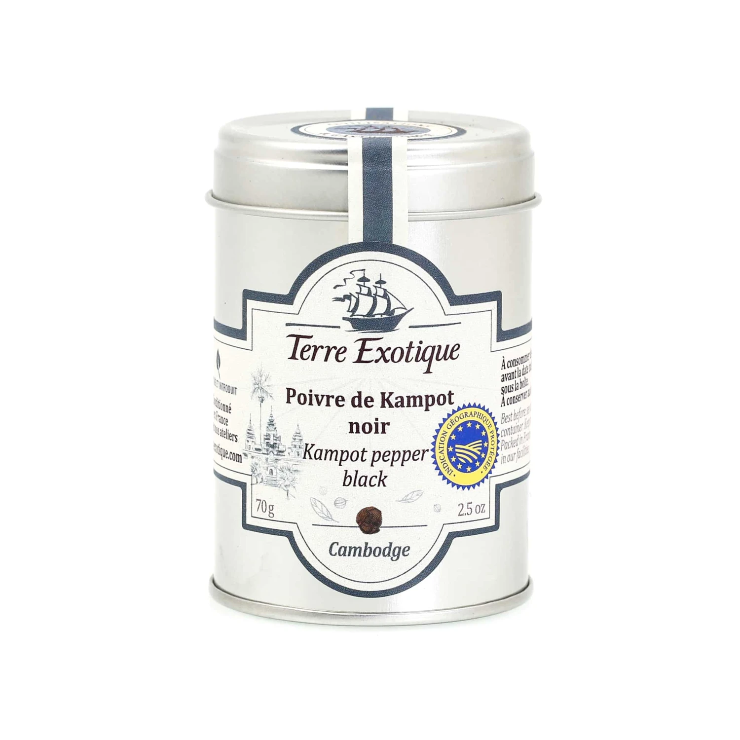 Terre Exotique’s black Kampot pepper is hot and pungent, with fruity, menthol notes. Known as the ‘grand cru’ of the spice world, Terre Exotique’s black Kampot pepper is harvested just before maturity, sorted by hand and put directly in the sun to dry. With its cold-spiciness, this black pepper makes a fantastic seasoning for shellfish. Alternatively, grind this pepper using a pestle and mortar and use it to make Cambodian Kampot Crab.Â