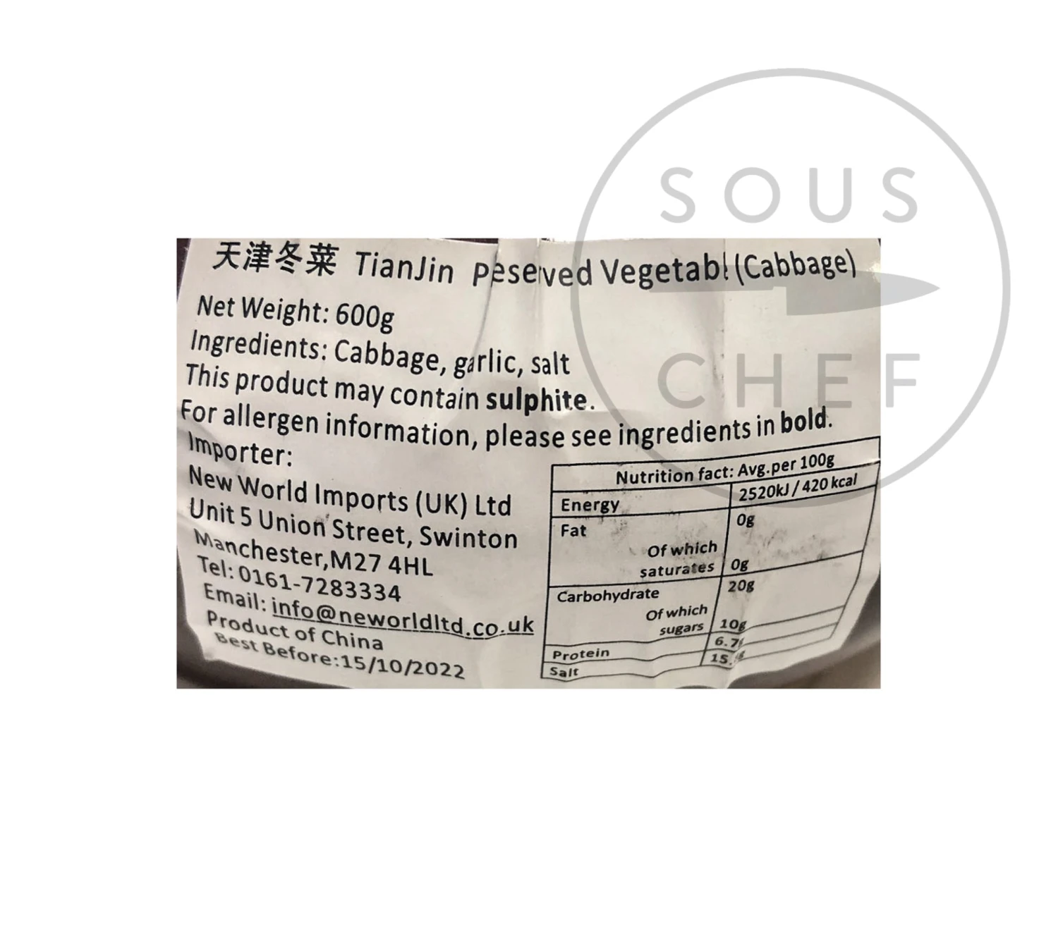 Ingredients: Tianjin cabbage, garlic, salt. May contain sulphites.