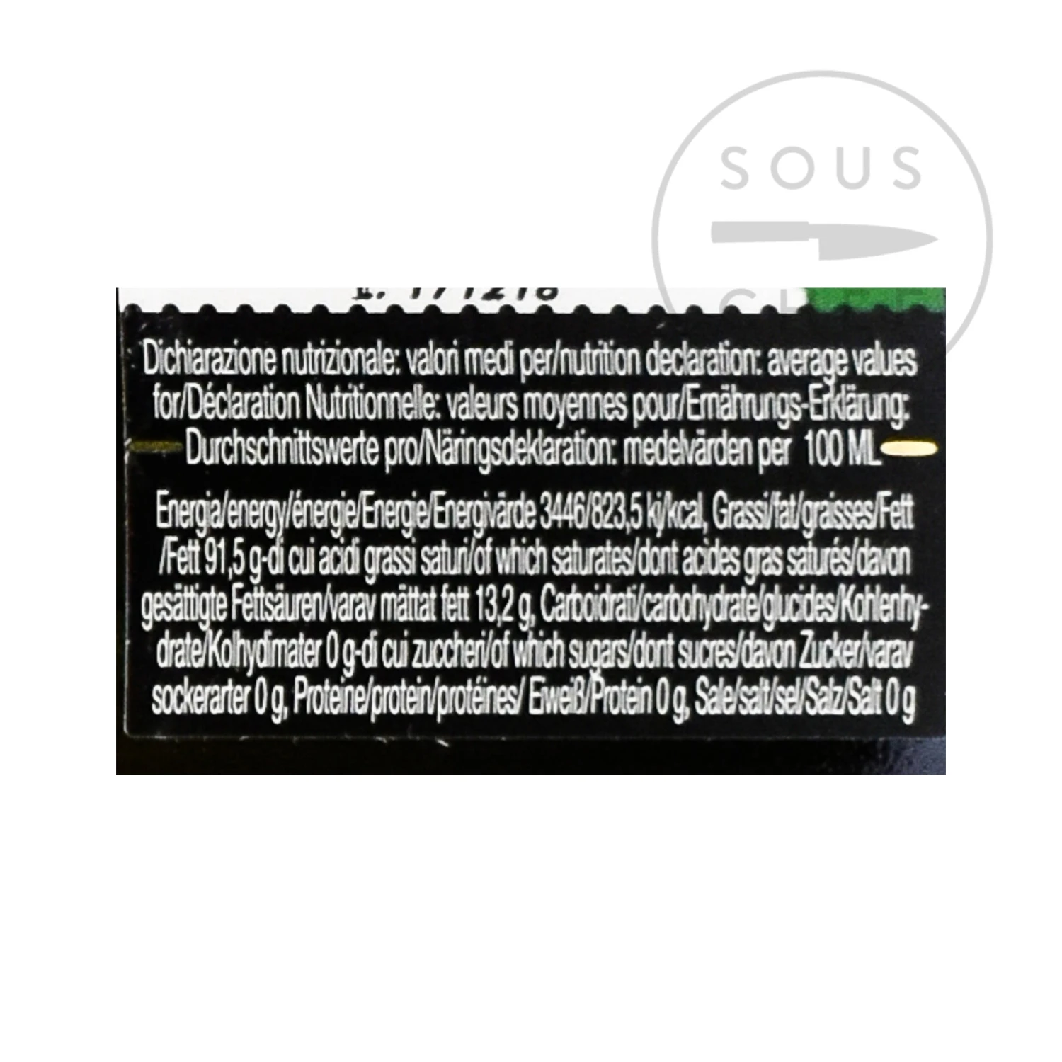 Ingredients: 100% extra virgin olive oil obtained solely by mechanical means