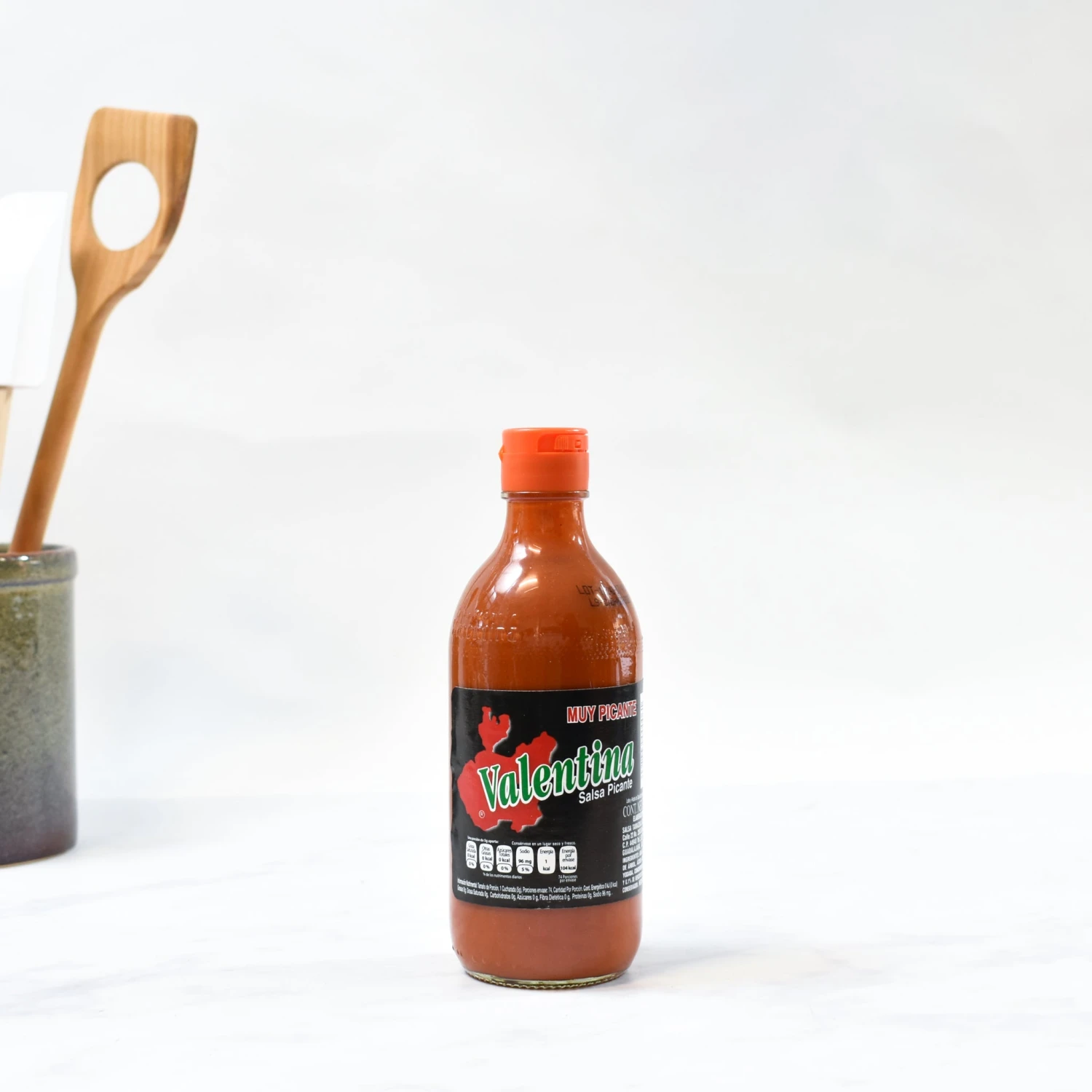Valentina’s salsa muy picante, or extra hot sauce, is a great chilli sauce for delivering fiery heat.  Valentina extra hot sauce is made from arbol chillies which rank between 15,000 and 30,000 units on the Scoville scale of chilli heat.