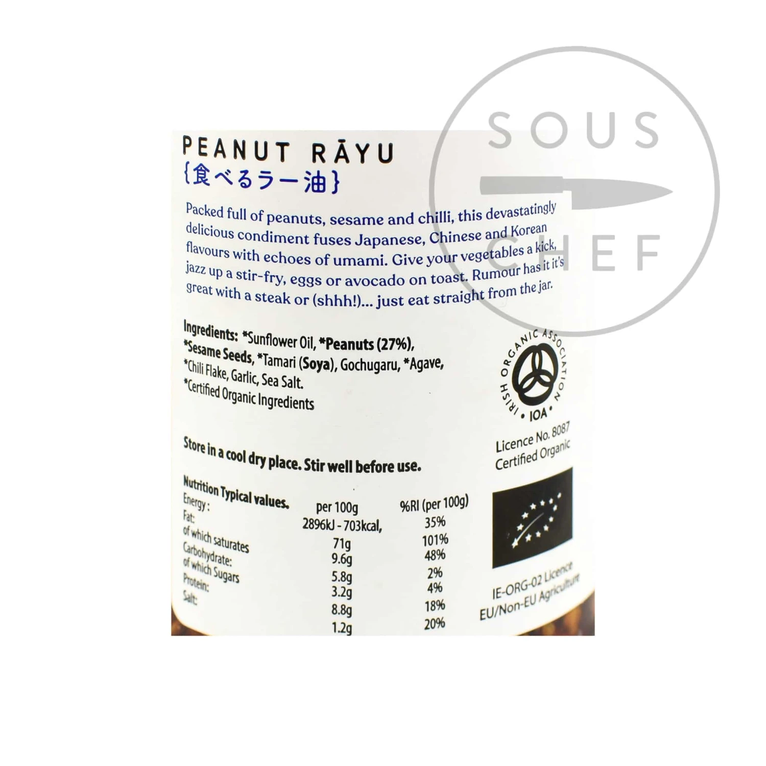 White Mausu organic peanut rayu is a fantastic blend of peanuts, sesame and chilli. Tamari soy sauce gives it a lovely umami depth, which is gently sweetened with agave. Use this warming nutty sauce on breakfast eggs, avocado on toast, or to season a bowl of ramen noodles. Or use it as a dipping sauce for gyoza!