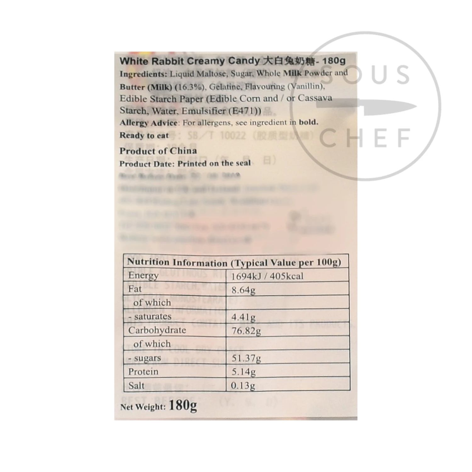 White rabbit candies are famously delicious Chinese chewy sweets, like a cross between nougat and childrens’ milk bottle penny-sweets. The White Rabbit sweets were originally marketed as a health food with the slogan “Seven White Rabbit candies is equivalent to one cup of milk”, although that should be taken with a pinch of salt.Â